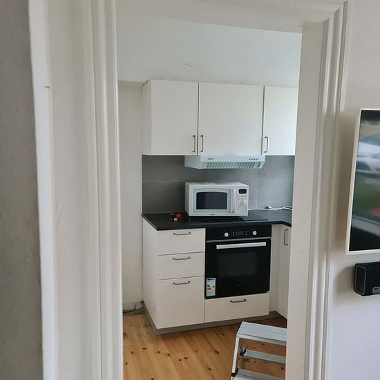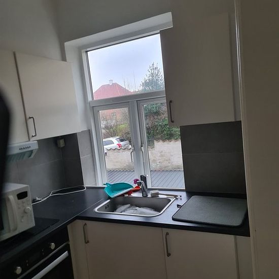 OBS OBS: fremvisning 14/4 kl. 15. To værelses lejlighed i ejendom, beliggende meget centralt i Fr.værk, i gåafstand til stort set alt. Består af entre, badeværelse, lille stue, lille soveværelse og lille køkken. Adgang til fælles have.