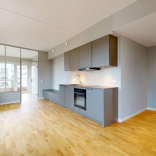 Boligen: I denne rummelige to værelses træder du ind i en god entre, med plads til sko og jakker – og på venstre hånd finder du badeværelset, på badeværelset har du separat bruseniche og en kombi vaske/ tørre maskine! Herfra træder du ind i det store opholdsrum, her har du god plads til både spisebord og sofa arrangement. I opholdsrummet har du også et stort køkken, som kommer med alle hårde hvidevarer. Slutteligt har du lejlighedens soveværelse med indbyggede skabe og adgang til altanen! Ejendommen: Norden har 193 studios af høj kvalitet. E...