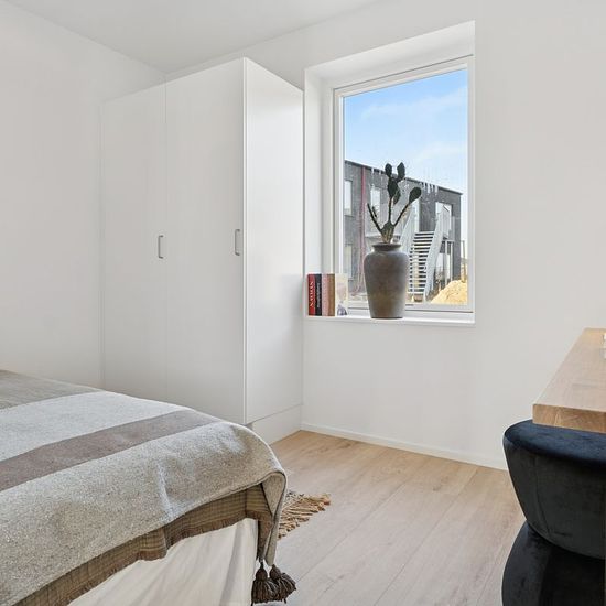 Hvis du ønsker at leje denne bolig, skal du underskrive en lejekontrakt samt indbetale 1. måneds husleje og 1 måneds forudbetalt husleje samtidig med underskrift af lejekontrakten. Senest den 1. juni 2026 skal du betale depositum på 3 måneders husleje. Der må efter forudgående aftale med udlejer holdes én hund eller én kat pr. bolig. DET ER IKKE MULIGT AT FÅ FREMVIST BOLIGEN, men der vil løbende blive afholdt åbne huse i en prøvebolig i løbet af foråret. Første åbne hus er den 15. marts. ADGANG FORBUDT PÅ BYGGEPLADSEN! OBS: Billederne e...