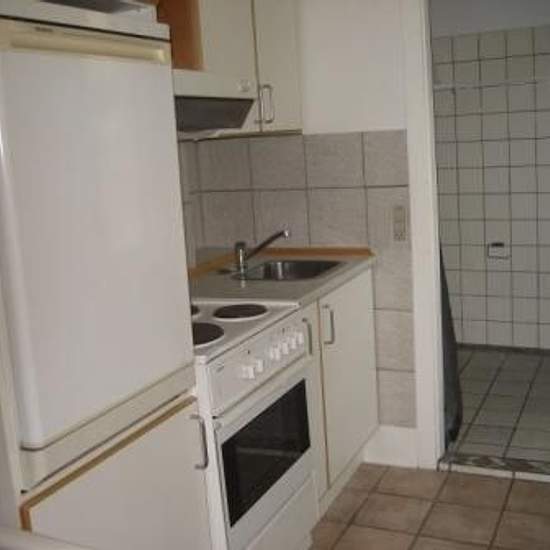 45 m² stor 1 værelses lejlighed beliggende på første sal. Separat køkkenniche med køleskab og komfur. Bad med brus.