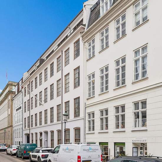 Boligen: Stor og lys bolig udført i lækre materialer med brede plankegulve, kæmpe terrasse, Quooker og to badeværelser. Boligen åbner sig op i en rummelig entré med gode indbygget skabe. Stor stue med højt til loftet og direkte adgang til den vestvendte altan. I åben forbindelse med stuen er det lyse køkken med køkkenø og indrettet med alt i hårde hvidevarer inkl. Quooker plus god skabsplads. Eksklusivt badeværelse med smukke fliser, integreret håndklædetørrer og vaskesøjle. To gode soveværelser mod Amaliegade, begge indrettet med indbygged...