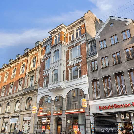 Det er i hjertet af København, at denne lejlighed ligger helt fantastisk. Her kommer du praktisk talt tæt på alt, hvad end det er kulturliv, rekreative omgivelser, butikker eller gourmetoplevelser. Selve hjemmet har alle de smukke karakteristika, som du kender fra denne type bolig. Det starter allerede udefra, hvor facaden byder på smukke fremspring og buede sprossevinduer. Inden døre skal du fortsætte oplevelsen i det åbne opholdsmiljø, hvor køkkenet og stuen forenes. Rummet byder på stuk og det nydelige gulv, og karnappen er en ekstra char...