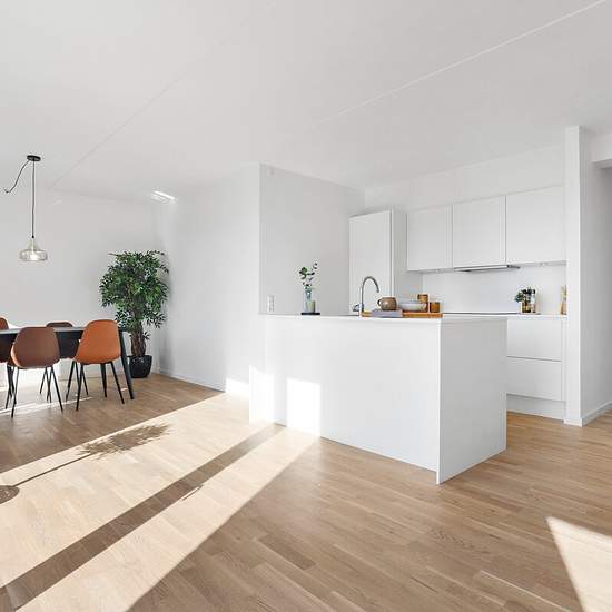 På Grønttorvet skabes fællesskaberne på kryds og tværs af alle bygningerne. Den store bypark, en grøn oase – hvor der blandt andet bliver plantet frugttræer, etableret en stor plæne og en urban promenade. Her er der plads til både at være sammen og være sammen hver for sig. Denne skønne lyse og velindrettede lejlighed byder på en funktionel planløsning med en god balance mellem opholdsrum og private områder. Boligen har et åbent køkken i forlængelse af stuen, hvor der er plads til både spisebord og sofaarrangement – et naturligt samlingspunk...