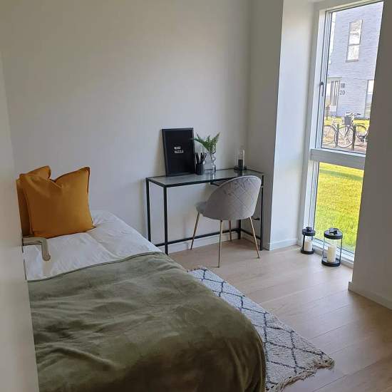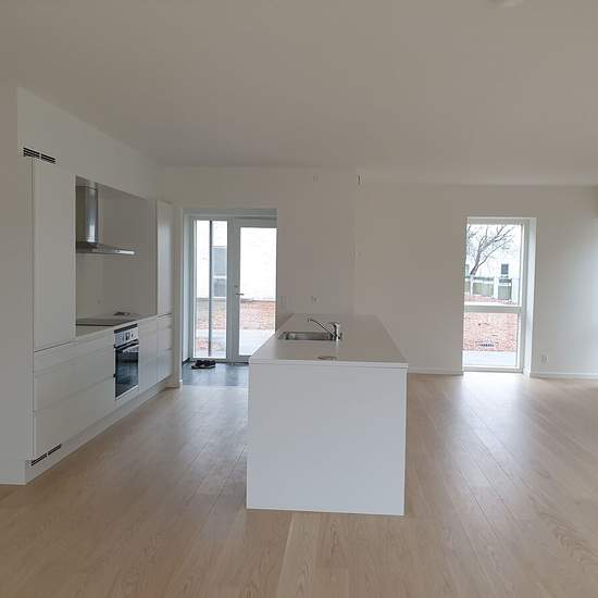 Lækker 4 værelses lejlighed beliggende i nyere opført boligområde tæt på skov og kyst i Nyborg udlejes pr. 1. april 2026. Lejligheden har et lækkert indrettet køkken i åben forbindelse til stue. Derudover soveværelse, 2 værelser, entre med indbygningsskabe og badeværelse. Til lejligheden hører der en lækker terrasse. Fotos fra indrettet prøvelejlighed. Video bør ses! Lejligheden udlejes gennem professionel administrator.