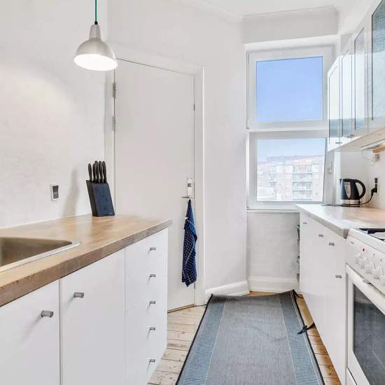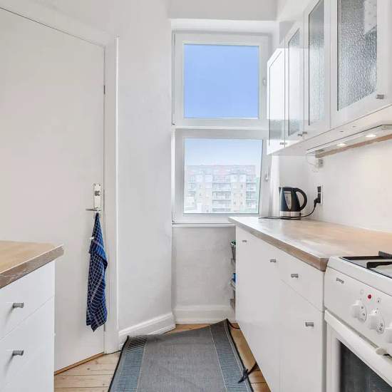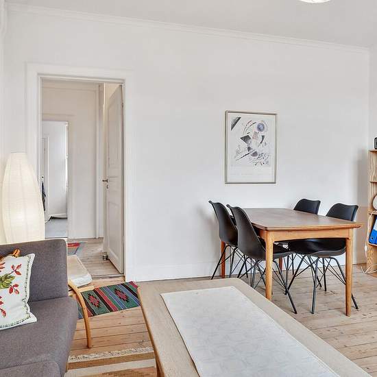 Lejligheden ligger på 2. sal i en bygning uden elevator og byder på et funktionelt og lyst hjem – perfekt til dig, som ønsker en god base i Aalborgs bymidte. Når du træder ind, mødes du af en god planløsning med separat stue og soveværelse, som giver mulighed for både hyggeligt ophold og roligt privatliv. Boligen er ikke møbleret, hvilket giver dig frihed til at sætte dit eget præg på indretningen. Køkkenet har plads til daglig madlavning, og der er installeret vaskemaskine, så hverdagens praktiske opgaver er lette at klare. Lejligheden er...