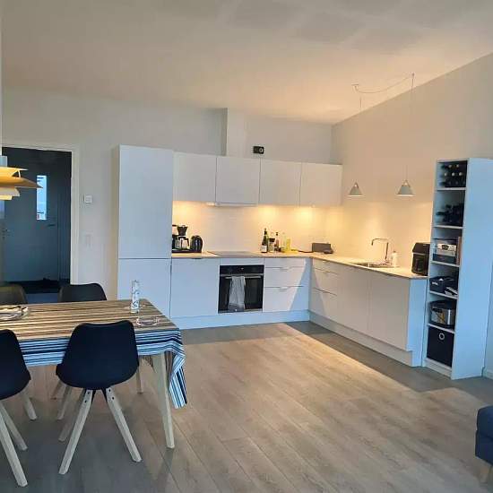 Lys og moderne 4-værelses rækkehus på 103 m2 med privat terrasse, parkering og husdyr tilladt Velkommen til et indflytningsklart rækkehus i ét plan, hvor lys, funktionalitet og rolige omgivelser går hånd i hånd. På 103 m2 får du en gennemtænkt planløsning med en stor, åben stue og køkken som hjemmets naturlige samlingspunkt. Herfra er der direkte udgang til en privat terrasse og lille have – oplagt til udeliv, afslapning og hyggelige måltider under åben himmel. Køkkenet er stilrent i hvidt med god skabs- og bordplads samt integrerede løsni...