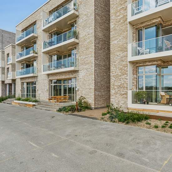 Hvide Falk består af 92 lejeboliger i mange forskellige størrelser. Den smukke, lyse ejendom ligger godt placeret midt i det nye bykvarter Søndre Kyst, men også i forreste række til den fredede strandeng, der leder ud mod Søndre Strand. Hvide Falk indeholder både større lejligheder til børnefamilier og seniorer, samt et boligfællesskab med delevenlige boliger og mindre lejeboliger, som henvender sig til personer, der søger det trygge fællesskab og samværet med andre. På taget ligger Søndre Kysts egen padelbane, som beboerne kan booke og spil...