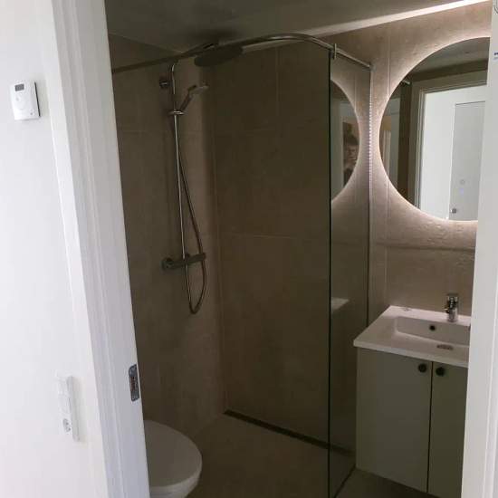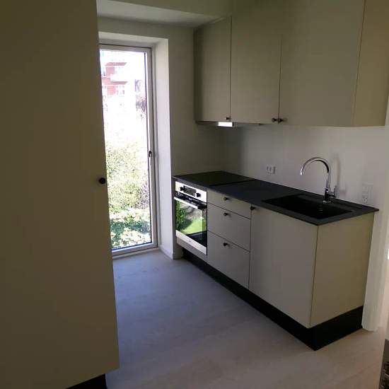2-værelses lejlighed med stor altan lige ved Aros. Består af værelse, badeværelse samt køkken/alrum. Ejendommen er opført i en baggård i 2025. Fint gårdmiljø tilhørende ejendommen. Lejligheden har alt i hårde hvidevarer bl.a. opvaskemaskine samt kombi vaske-/tørremaskine. Depotrum i kælderen. Det er lejligheden til højre på plantegningen som der udlejes.