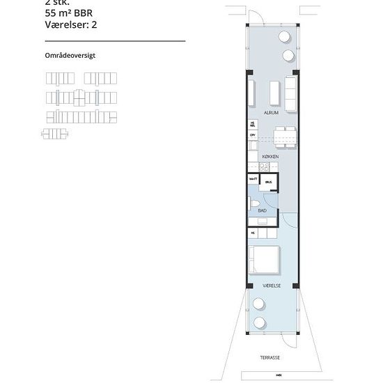 - 2 værelser