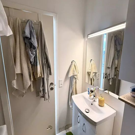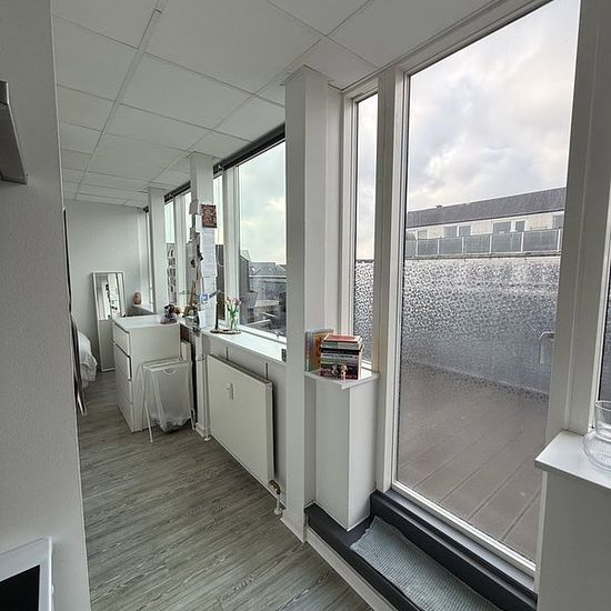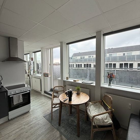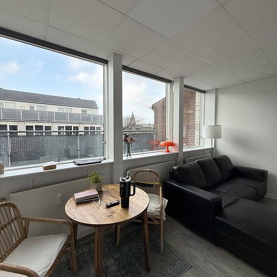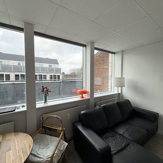 Velkommen til en indbydende 1-værelses lejlighed på 55 m2, hvor lyset strømmer ind gennem store vinduespartier, og hvor en usædvanligt rummelig altan forlænger opholdszonen ud i det fri. Her bor du højt med kig over byens tage, i en moderne ramme med elevator i opgangen og egen vaskemaskine – ideelt til dig, der vil bo bekvemt og bynært. Boligens hjerte er det lyse opholdsrum med vinduer i hele facadens længde, der skaber et behageligt lys og en god forbindelse til udelivet. Her er plads til både sofa- og spiseområde, og planløsningen gør de...