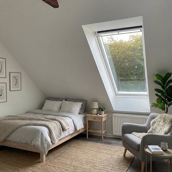 Velkommen til en indbydende lejlighed i tagetagen, hvor skrå vægge, synlige loftsbjælker og store ovenlysvinduer skaber en varm og lys atmosfære. De 87 veludnyttede m2 fordeler sig på en stue i åben forbindelse med køkken, tre værelser og et lyst badeværelse – ideelt til par, en lille familie eller dig, der ønsker ekstra plads til hjemmekontor og gæster. Opholdsmiljøet opleves lyst og roligt med et rart kig til grønne trækroner fra stuen. Her er god plads til sofa, TV-møbel og en hyggelig læsekrog under ovenlyset. Den møblerbare fordelingsga...