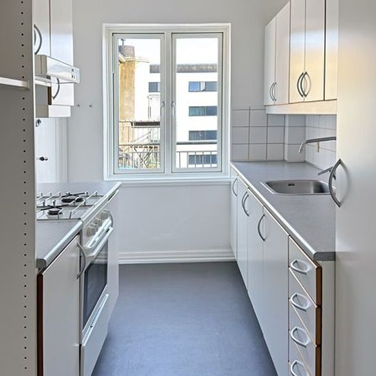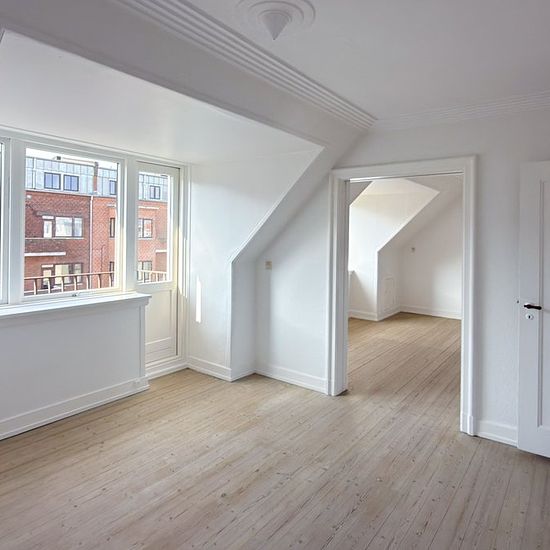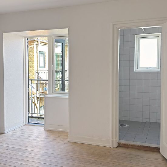 Stor 3-værelses lejlighed på Vesterbro udlejes. Lejemålet er placeret midt i Aalborg med kort afstand til gode handlemuligheder og offentlige transport og med kun 5 minutters gang står du på Kennedy Arkaden. Derudover ligger lejemålet tæt på gågaden og midtbyen, hvor det pulserende café- og byliv kan opleves. Ydermere er lejemålet kun få minutters gang fra det dejlige grønne område i Kildeparken og har kig til den smukke Ansgars kirke. Lejligheden indeholder fordelingsgang, to stuer en suite med franske døre og altan, et værelse med en...