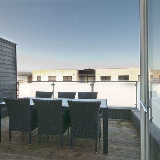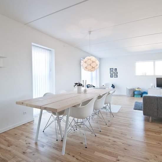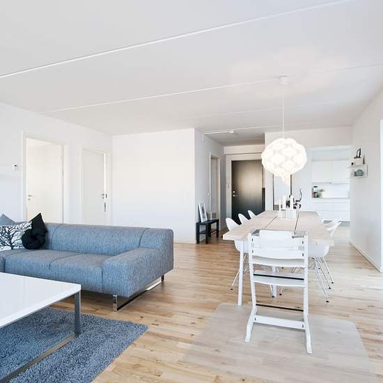 Velkommen til en moderne og indflytningsklar lejlighed på hele 113 m2, hvor lyse materialer, god plads og en funktionel planløsning går hånd i hånd. Boligen byder på et stort og indbydende opholdsrum med køkken-alrum i åben forbindelse til stuen. Det stilrene, hvide køkken er grebsfrit med god skabs- og bordplads samt integrerede hvidevarer – herunder opvaskemaskine, indbygningsovn og kogeplade. Her er fin plads til et langt spisebord, og stuen møbleres nemt med sofa- og TV-zone. De store vinduespartier og gennemgående lyse trægulve skaber e...