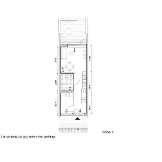 Lys toværelses bolig med egen terrasse og stort badeværelse