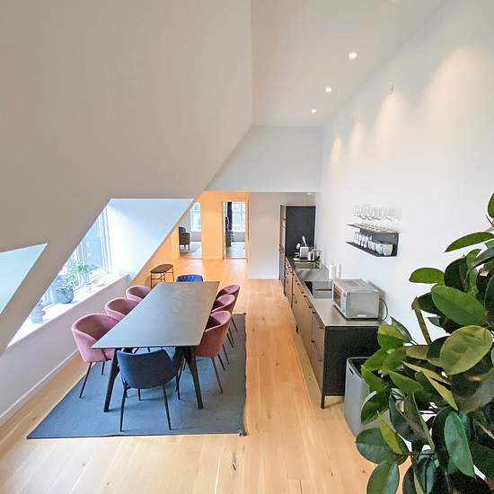 Bo i hjertet af København, omgivet af eksklusive butikker, Kongens Nytorv, shopping-centre Magasin/ILLUM, Nyhavn, Christianshavn, Metro mm. Denne ende af Strøget har i de seneste år gennemgået en stor udvikling og upgrade. Lejligheden er beliggende på 3. sal. Lejligheden er fordelt på 214m2 og er gennemrenoveret fra A-Z. Den byder på god entre, hyggelig stue med udsigt til gågaden Østergade og de flotte gamle bygninger, lækkert Vipp-køkken i stilrent og funktionelt design. Køkkenet har spiseplads med langbord og skønt lysindfald fra store vi...