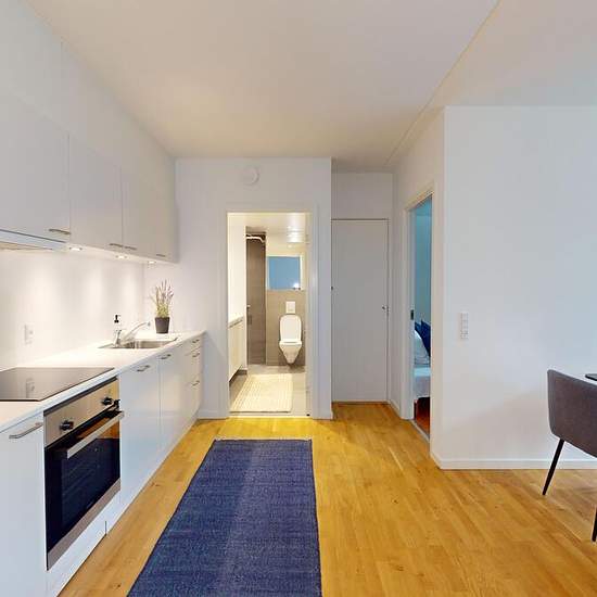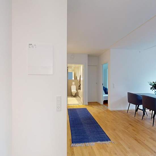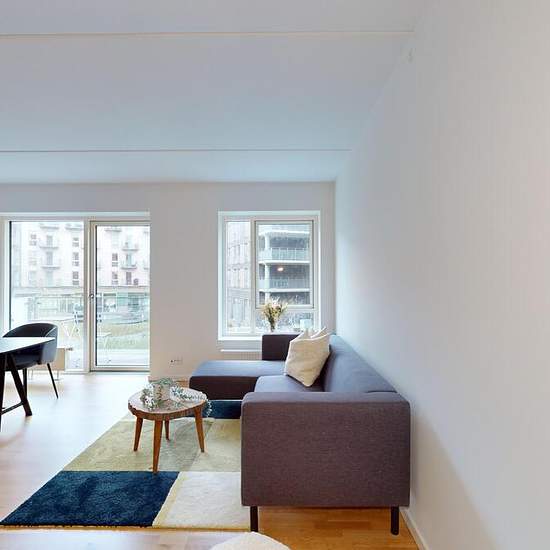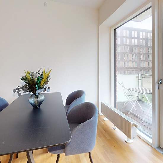 Lejlighederne i Erda 2 er udstyret med et nyt og lækkert køkken fra Invita, som inkluderer alle nødvendige hårde hvidevarer fra Siemens. Køkkenet er designet i åben forbindelse med opholdsarealet/stuen, hvilket skaber et rummeligt og moderne udtryk. Badeværelserne har klinkegulv med gulvvarme, en stor bruseniche samt en praktisk, indbygget vaskemaskine. Både værelser og opholdsrum har flotte parketgulve, der giver et elegant og sammenhængende udtryk i hele boligen. Ejendommen byder på en skøn gårdhave med en lille legeplads, der skaber et h...