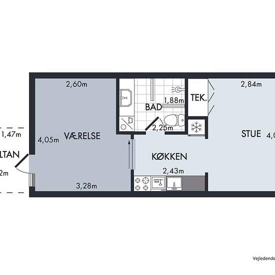 Moderne 2-værelses lejlighed i Bryggerhaven