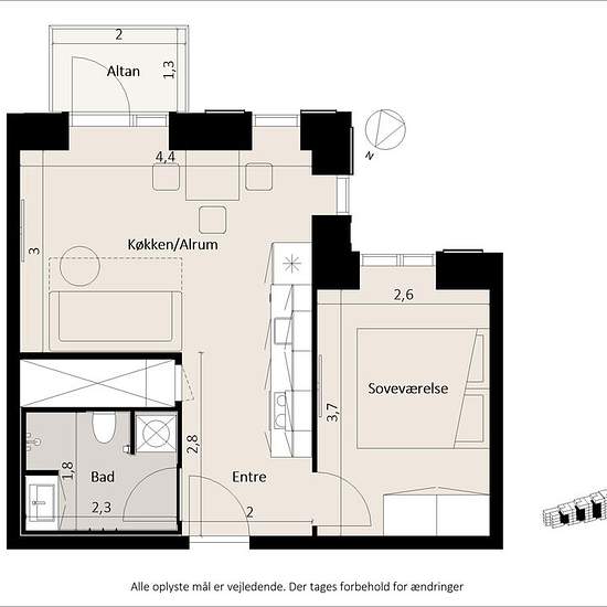 Moderne 2-værelses lejlighed med altan i Tingbjerg