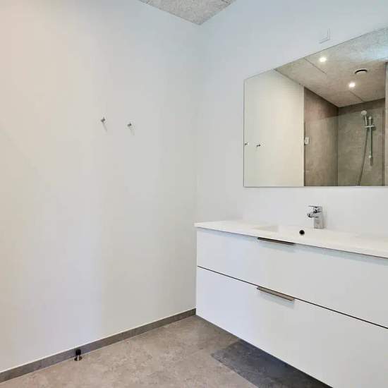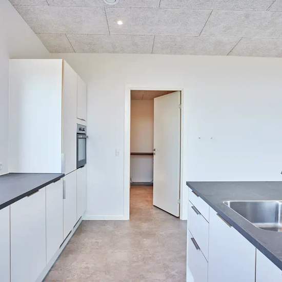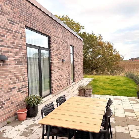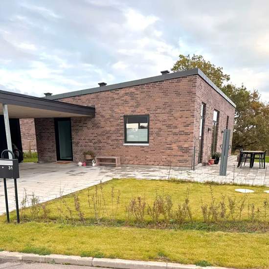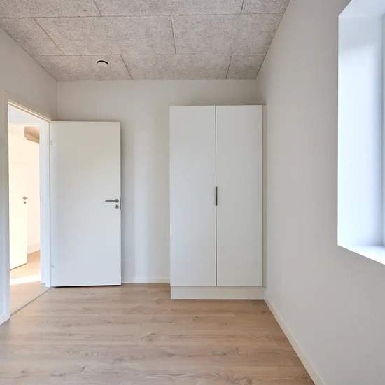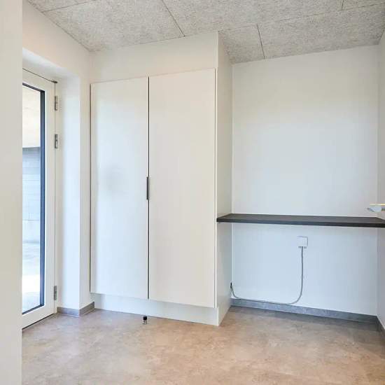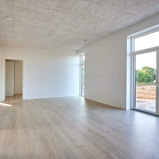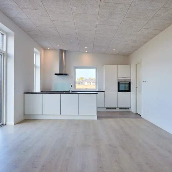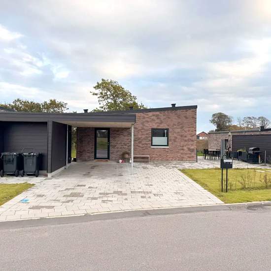 Oplev et indbydende hus på 101 kvadratmeter, ideelt til både familier og par. Dette moderne hjem byder på tre rummelige værelser, et lyst køkken-alrum og et funktionelt badeværelse, der opfylder alle behov. Indtræd i en lys stue, hvor store vinduespartier sikrer et flot lysindfald. Det åbne køkken er veludstyret med elegante bordplader og opvaskemaskine. Fra køkkenet er der direkte adgang til en terrasse, hvor du kan nyde de smukke omkringliggende grønne områder. De tre værelser er alle lyse og indbydende med muligheder for både soveværel...