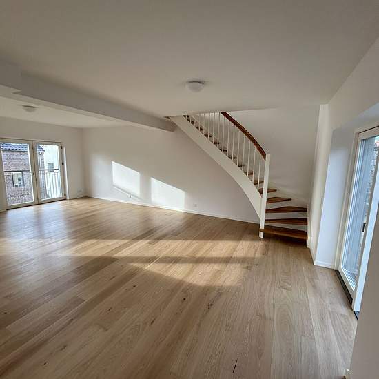 Unik toplans lejlighed placeret i højden på Østergade. På nedre plan finder man entréen, flot badeværelse, stort gennemlyst køkken alrum med trappe til 2 sal, samt altan hvorpå du kan nyde morgensolen. På 2 sal ligger 2 gode værelser og et fordelingsrum som kan indrettes som kontor eller hyggekrog. Derudover finder man en god størrelse tagterrasse. Med vinduer både mod øst og vest er man sikret et godt lysindfald i lejligheden gennem hele dagen. Der er mulighed for at leje en p-plads i gården. Adgang til at leje festlokale. Er du int...
