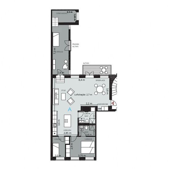 Tryk her for at se en video af en lignende bolig. Lejligheden: Stor og lys bolig udført i lækre materialer med brede plankegulve, Quooker og to badeværelser. Boligen åbner sig op i åben entré i forbindelse med den store stue med højt til loftet og direkte adgang til den vestvendte altan. I åben forbindelse med stuen er det lyse køkken med køkkenø og indrettet med alt i hårde hvidevarer inkl. Quooker plus god skabsplads. Eksklusivt badeværelse med smukke fliser, integreret håndklædetørrer og vaskesøjle. To gode soveværelser mod Amaliegade, ...