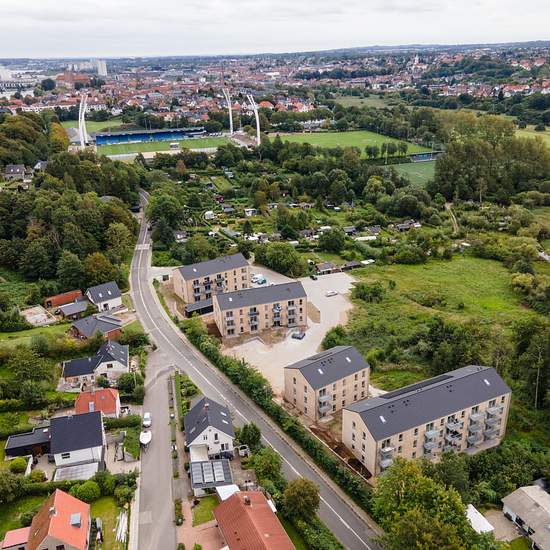 På en særdeles attraktiv beliggenhed i Kolding er opført 47 energivenlige lejligheder med unik beliggenhed direkte ved Kolding Ådal. De lyse lejligheder har en skøn beliggenhed med naturen direkte udenfor døren, men samtidig blot en kort gå- eller cykeltur for Koldings sprudlende bymidte, hvor du finder alt fra gode restauranter og caféer, butikker og kulturoplevelser i særklasse. Lejlighederne er opført i varierende planløsninger og størrelser, der fordeler sig på to til fem værelser. Stadionhavens unikke placering i rolige og naturskønne, ...