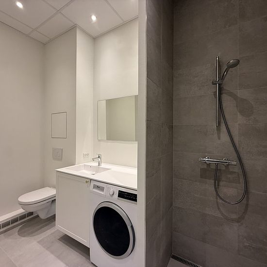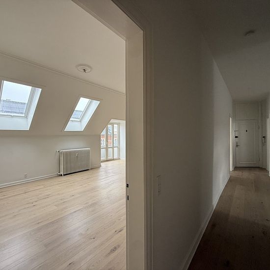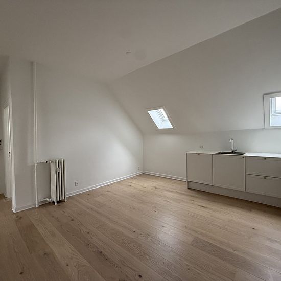 About This apartment is newly refurbished. The apartment has 3 rooms in total – 1 living room and 1 bedroom and an office. There is 1 bathroom and a spacious kitchen with space for dining. From the living room you have access to a balcony and there is an elevator in the building. Note! In this newly renovated apartment, there is also the option to create an extra bedroom in the spacious living room – see the floor plan in the last picture for details.
