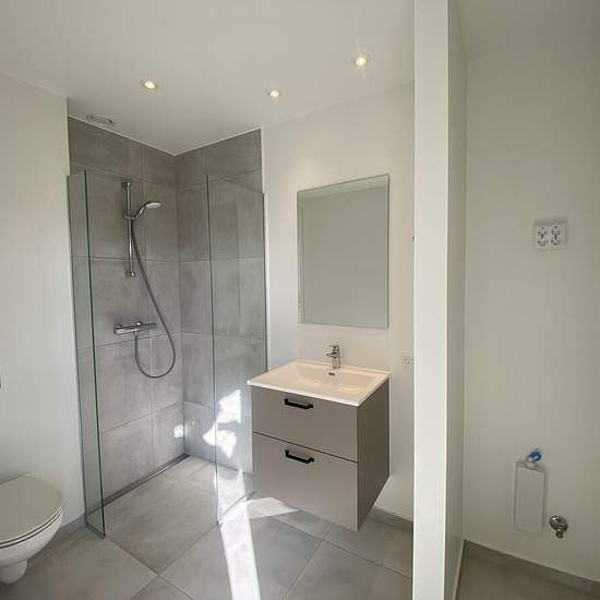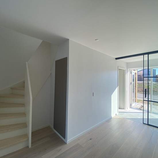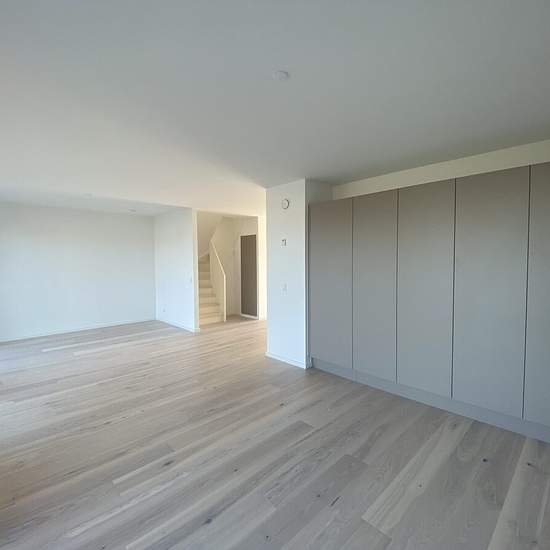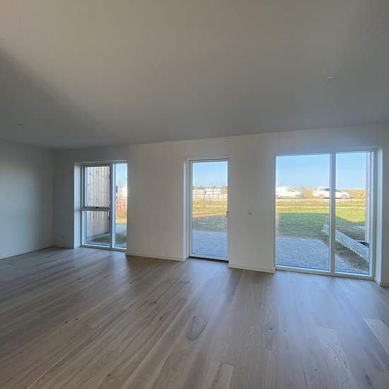 About Newly built 2-plan house with 3 bedrooms and 2 bathrooms. The houses offer a scenic view of nature, providing you with the opportunity to settle into a beautiful home designed with timeless elements and large windows that allow for optimal lighting. Additionally, there is a private terrace and parking. The homes are built with environmental consideration, and all townhouses are made from sustainable wood materials. The construction principles focus on creating eco-friendly homes with bright rooms and space for privacy. The houses a...