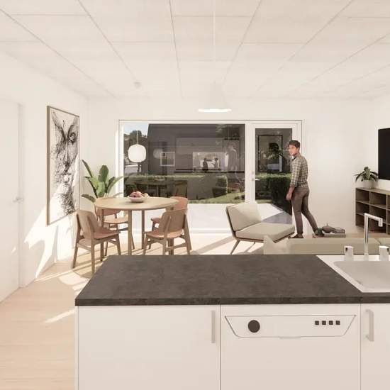Drømmer du om at flytte ind i noget helt nyt, moderne og indflytningsklart? Så er de spritnye rækkehuse i Kastanjelunden klar til at imponere dig – fra 1/7 kan du få nøglerne i hånden! Her får du en lækker 2-værelses bolig på 62 veludnyttede kvm med moderne køkken-alrum, stilrent badeværelse og et rummeligt soveværelse. Store vinduer giver masser af naturligt lys , og din egen private terrasse skaber de perfekte rammer for morgenkaffe og sommeraftener Alt er nyt. Alt er gennemtænkt. Alt er klar til DIG. Forestil dig at bo i rolige, gr...