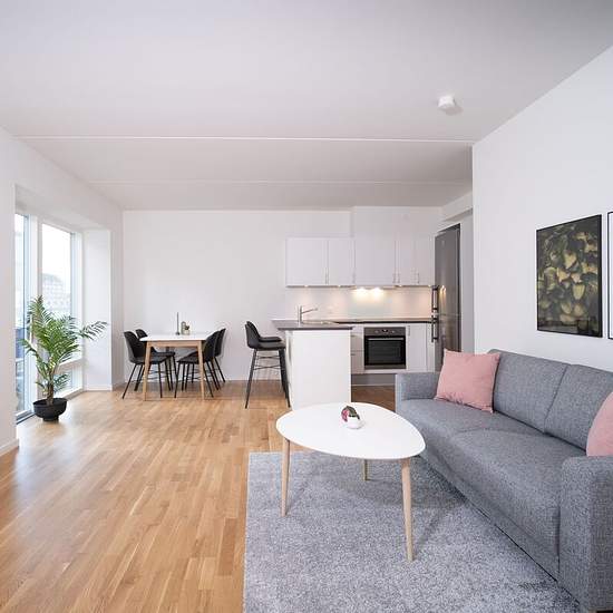 Det er en helt ny lejlighed, der er placeret i Gartnerbyen – Odenses grønne hjerte. Du kommer til at bo i et område, der er tæt på centrum, hvor du har alt inden for rækkevidde. Lejligheden har store vinduer, der giver et godt lysindfald. Derudover er der en fin altan/terrasse, hvor du kan nyde din kaffe på en solrig dag. Materialerne i lejligheden er nøje udvalgt, så lejligheden har et moderne udtryk. Stuen ligger i forlængelse af køkkenet, hvilket skaber et åbent miljø. Fra stuen har du adgang til altanen/terrassen. I køkkenet er der...