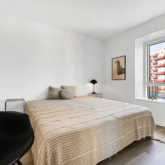 Velkommen til Egeparken – en nyopført og velindrettet 2-værelses lejlighed på 75 m² i Aalborg. Boligen fremstår lys og indbydende med en god planløsning, der passer rigtig godt til både singlen eller parret, som ønsker en moderne og nem hverdag. Lejligheden byder på et åbent køkken-alrum og stue i ét, hvor de store vinduespartier giver et flot lysindfald. Køkkenet er udstyret med opvaskemaskine, og fra stuen er der udgang til en stor altan, som giver ekstra plads i hverdagen. Derudover får du et lyst badeværelse med mulighed for egen vaskes...