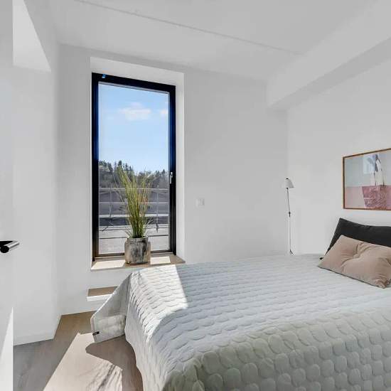 Ankomstpladsen markerer indgangen til Aalborgs populære bydel, Eternitten, hvor det vrimler med liv og en skøn, urban stemning. På Eternitten er du tæt på både busforbindelser, motorvej, fitness, dagligvarebutikker og meget mere. På Ankomstpladsen kan du vælge mellem 134 moderne 1-, 2- eller 3-værelses lejeboliger med gode lysforhold og et råt udtryk. Størstedelen af lejlighederne er indrettet med rå betonvægge og smarte newyorker-glasvægge, der skaber de perfekte rammer for en personlig stil. Lejlighederne har et lyst, nordisk look med gul...