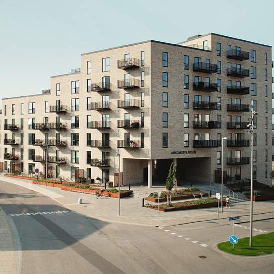 Ankomstpladsen markerer indgangen til Aalborgs populære bydel, Eternitten, hvor det vrimler med liv og en skøn, urban stemning. På Eternitten er du tæt på både busforbindelser, motorvej, fitness, dagligvarebutikker og meget mere. På Ankomstpladsen kan du vælge mellem 134 moderne 1-, 2- eller 3-værelses lejeboliger med gode lysforhold og et råt udtryk. Størstedelen af lejlighederne er indrettet med rå betonvægge og smarte newyorker-glasvægge, der skaber de perfekte rammer for en personlig stil. Lejlighederne har et lyst, nordisk look med gul...