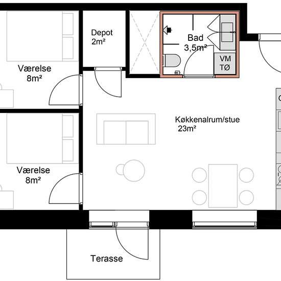 - 3 værelser