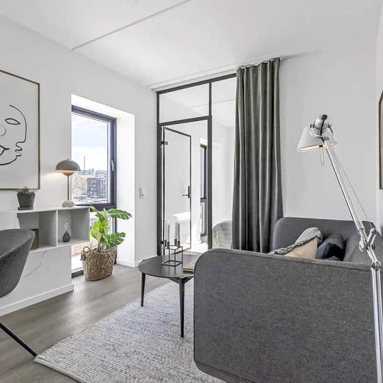 Ankomstpladsen markerer indgangen til Aalborgs populære bydel, Eternitten, hvor det vrimler med liv og en skøn, urban stemning. På Eternitten er du tæt på både busforbindelser, motorvej, fitness, dagligvarebutikker og meget mere. På Ankomstpladsen kan du vælge mellem 134 moderne 1-, 2- eller 3-værelses lejeboliger med gode lysforhold og et råt udtryk. Størstedelen af lejlighederne er indrettet med rå betonvægge og smarte newyorker-glasvægge, der skaber de perfekte rammer for en personlig stil. Lejlighederne har et lyst, nordisk look med gul...
