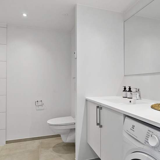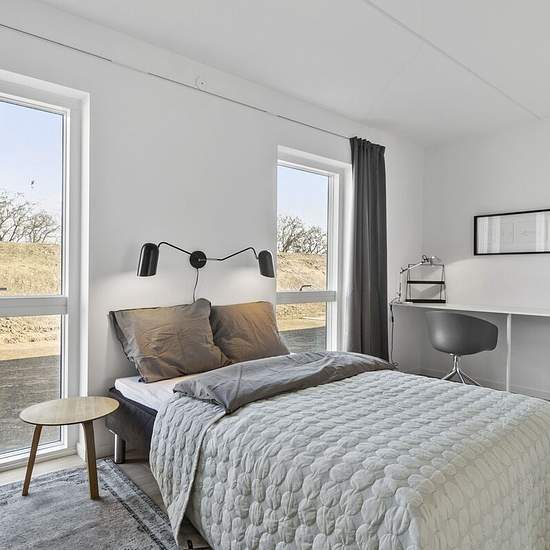 Drømmer du om en moderne og lys 2-værelses lejlighed? Disse nyopførte boliger fra 2021/22 er perfekte til dig, der søger både stil og funktionalitet. Lejlighederne fås både i stueplan med en hyggelig terrasse og på 1. sal med altangang – begge med sydvendte placeringer, der sikrer masser af sollys hele dagen. Indenfor er lejligheden indrettet med en stor, lys stue og et åbent køkken-alrum. Her finder du alt i kvalitets hårde hvidevarer, inklusiv integreret opvaskemaskine, smukke hvide skabselementer fra Svane Køkken og stilrene laminatgulve...