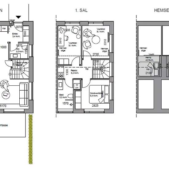 Nyopførte ende rækkehuse tæt på by og natur. 113 m2 inkl. hemse