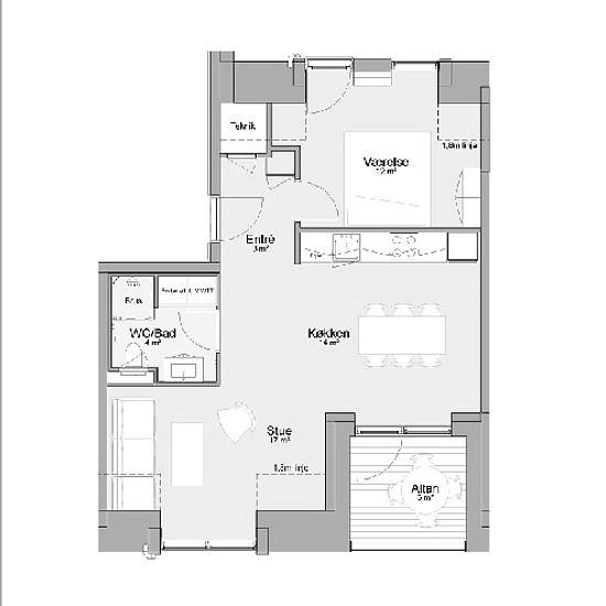 Moderne og lys 2-værelses lejlighed med egen altan beliggende i tagetagen i en skøn oase midt i Årslev. Ejendommen er opført med fokus på bæredygtighed, fællesskab og arkitektonisk variation. Facaderne består af varmebehandlet træ, hvilket understøtter den grønne profil. Ejendommene opføres som en del af Fremtidens Forstad i Årslev, syd for Odense beliggende i naturskønne omgivelser omkring Vindinge Å. Der er derudover kort afstand til indkøb, institutioner og sportsfaciliteter. Lejligheden består af entré, badeværelse, et værelse med 2 skab...