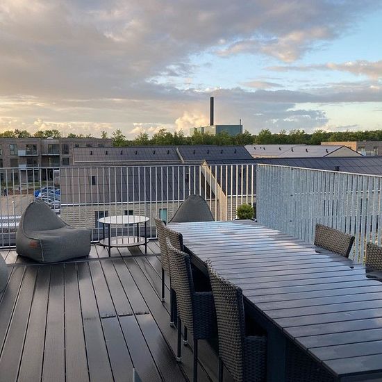 Nyt og moderne hjem med adgang til tagterrasse og stort fælleshus