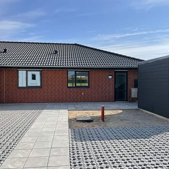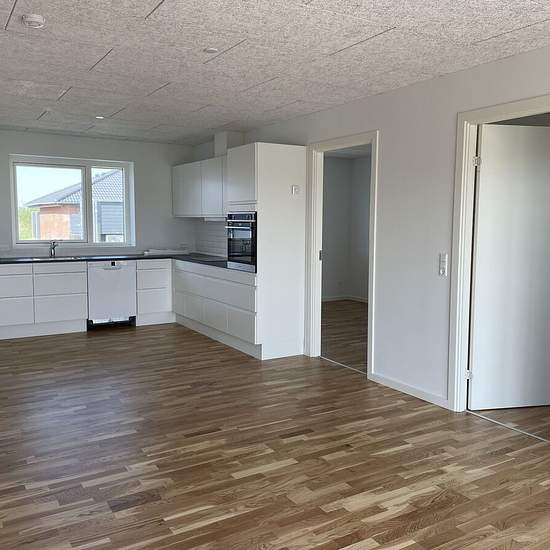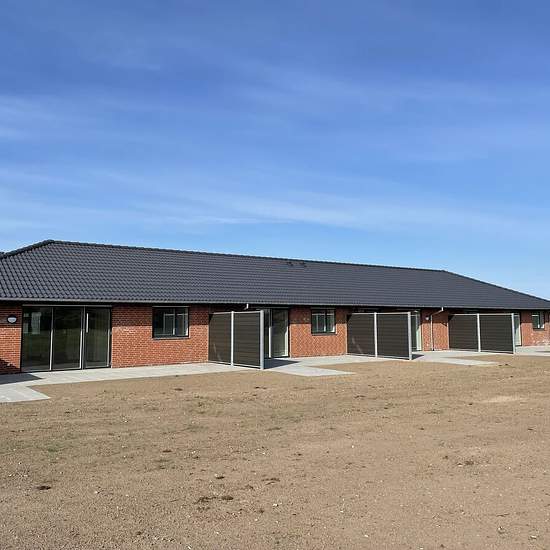 Rækkehusene indeholder entre med teknikskab og skab med plads til vaskesøjle (vaskemaskine og kondenstørretumbler). Køkken/alrum med hvidt grebsfrit køkken fra HTH. Køkkenet indeholder opvasker, emhætte, ovn, kogeplader og køle-/fryseskab. Rækkehusene indeholder et badeværelser med brus. Derudover har rækkehusene to værelser med indbygningsskabe. Til lejemålene tilhøre egen indkørsel med mulighed for opsætning af ladestander, egen have med fliseterrasse og græsplæne, samt eget skur. Med individuel gulvvarme og ventilation i alle rum i r...
