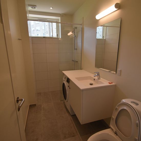 Lejligheden består af 3 store værelser, hvilket gør lejligheden god som delelejlighed for 3. Invita køkken med alt i hårde hvidevarer. Badeværelse med gulvvarme, separat bruseniche samt kombi vaske-/tørremaskine.