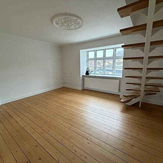 Skøn 3-værelses lejlighed beliggende på Vestre Alle, 9000 Aalborg. Lejligheden er beliggende tæt ved Skipperen med kort afstand til Aalborg Zoo, Mølleparken, diverse handlemuligheder samt offentlig transport. Lejligheden er i 2 plan og indeholder en entré, nyere køkken med udgang til en stor og skøn altan. To lyse stuer en suite med smukke stuklofter. På 1. sal finder du et stort badeværelse med bruseniche og et soveværelse med charmerende synlige bjælker samt skabe. Lejemålet overtages nymalet og med nybehandlede gulve.