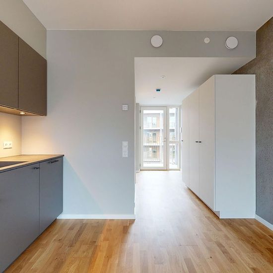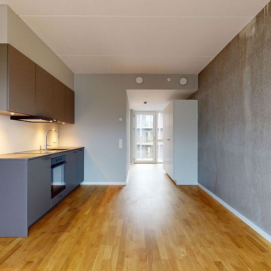 Boligen: I denne bolig træder du ind i en god entre, med indbyggede skabe – herfra har du på venstre hånd adgang til badeværelset, det kommer med vaskemaskine og separat bruseniche. Videre ind i boligen træder du ind i det rummelige opholdsrum, her er der god plads til både spisebord og seng eller eventuelt en sovesofa. I opholdsrummet har du også boligen store køkken, som kommer med alle hårdhvidevarer. Boligen kommer i høj kvalitet, med trægulve, flotte køkkener fra Rotpunkt, gulvvarme og et urbant moderne look! Ejendommen: Norden har 193 ...
