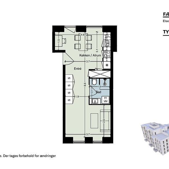 Om boligen: Som noget helt enestående, får du i dette byggeri et smukt, olivengrønt Invita køkken. Der er installeret hvidevarer fra Electrolux og i nogle køkkener er ovnen hævet, for at give en endnu bedre arbejdshøjde. På badeværelset går den olivengrønne farve igen og giver et naturligt og roligt udtryk i rummet. Her er installeret både vaskemaskine og tørretumbler fra Electrolux. Gulvene er i eg og der er gulvvarme i hele boligen. Der er indbyggede skabe med god plads til opbevaring og derudover har alle boliger depotrum enten i lejlighe...