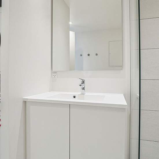 Om boligen: Denne skønne og optimerede lejlighed starter med at byde dig velkommen i en separat lys entré med plads til at hænge overtøjet og med adgang til et stort soveværelse, hvor der er plads til den store seng – fra soveværelset har du yderligere adgang til lejlighedens depotrum, som med fordel kan bruges til walk-in, hvis dette foretrækkes. Fra entréen har du ydermere adgang til badeværelset, som er opført i et tidløst lækkert design, rummeligt og med separat bruseniche og hertil både med vaskemaskine og tørretumbler. I det store lyse...