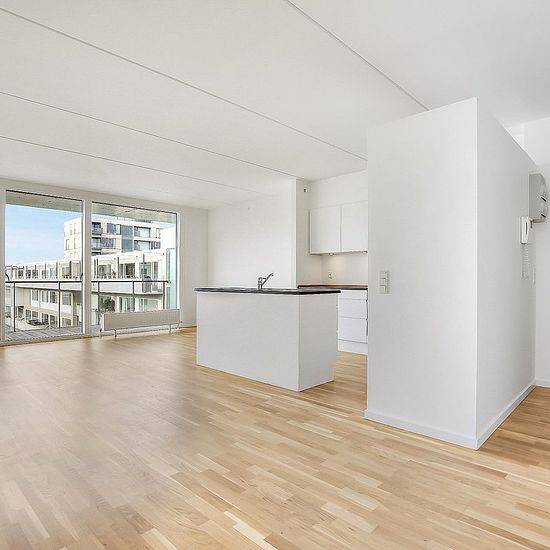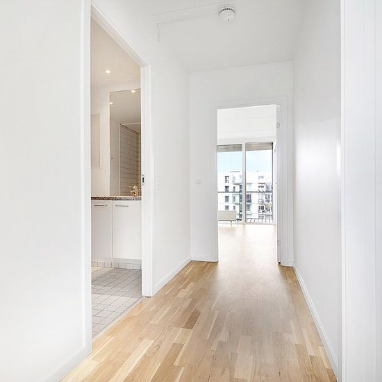 OBS!! Billederne er ikke fra det aktuelle lejemål, men skal blot give et indtryk af stilen. Plantegningen er fra boligen. Denne charmerende lejlighed har alt, hvad du behøver for en behagelig og moderne livsstil. Lejligheden er indrettet med stil og funktionalitet og byder på 2 soveværelser, et rummeligt køkkenalrum og en fantastisk altan. Køkkenalrummet er hjertet i lejligheden, hvor du nemt kan indrette både spisestue og dagligstue i ét rum. Det moderne køkken er udført med hvide grebsløse fronter, hvilket giver et minimalistisk og elega...