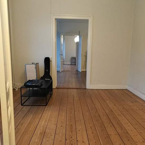 Velkommen til en stor og lys lejlighed på hele 158 m2, der kombinerer klassiske detaljer med en funktionel planløsning. Her får I masser af plads at indrette jer på – oplagt til deling blandt venner eller kolleger, eller til jer der ønsker en bolig med ekstra rum og ro. Lejligheden byder på en lang fordelingsgang med vinduer, god vægplads og praktiske knagerækker, som gør hverdagen nem fra det øjeblik, man træder ind. Fra gangen er der adgang til flere separate rum, hvilket giver en fleksibel indretning med mulighed for op til tre gode sove...