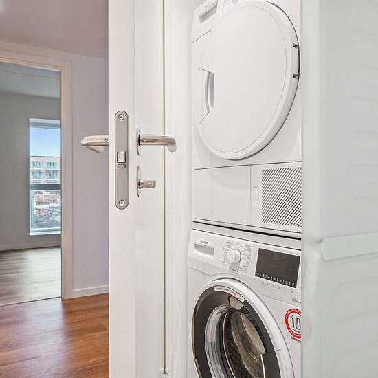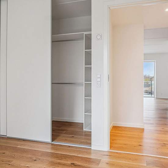 Om boligen: Denne skønne og optimerede lejlighed starter med at byde dig velkommen i en separat lys entré, med plads til at hænge overtøjet og med adgang til et stort værelse med indbygget skab og hvor der både er plads til seng og skrivebord. Fra entréen har du ydermere adgang til badeværelset, som er opført i et tidløst lækkert design, rummeligt og med separat bruseniche og hertil både med vaskemaskine og tørretumbler. Lejligheden har tilmed et stort soveværelse med plads til den store dobbeltseng samt adgang til depotrum, som med fordel k...