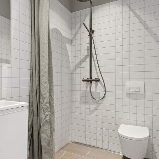Ejendommen Smedetoften Smedetoften er en moderne ejendom med velindrettede 1-værelses boliger, der henvender sig til beboere, som søger en funktionel bolig kombineret med gode fællesfaciliteter. Boligerne har et boligareal på 39–52 m² og er indrettet med fokus på optimal udnyttelse af pladsen. Planløsningen samler opholdsrum, køkken og badeværelse på en praktisk og overskuelig måde, hvilket gør boligerne særligt velegnede til singler, par eller studerende. Hver bolig har tilknyttet eget depot- eller kælderrum, som sikrer ekstra opbevaringspl...
