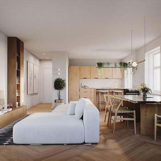 Nu er udlejningen startet, så I har chancen for at flytte ind i en af de helt nye lejligheder i aller sidste etape af Bangs Have, en udvikling af de gamle fabrikker på B. Bangs Gade i Odense, hvor historisk industriarkitektur møder moderne byliv. Denne 4-værelses hjørnelejlighed på 110 m² ligger på B. Bangs Gade 1 i et helt nyopført hus med kun 7 lejligheder, i en af etagerne over det kommende kreaværksted i stueetagen, og byder på masser af dagslys fra flere sider. Lejligheden har en åben og velproportioneret planløsning med et stort kø...